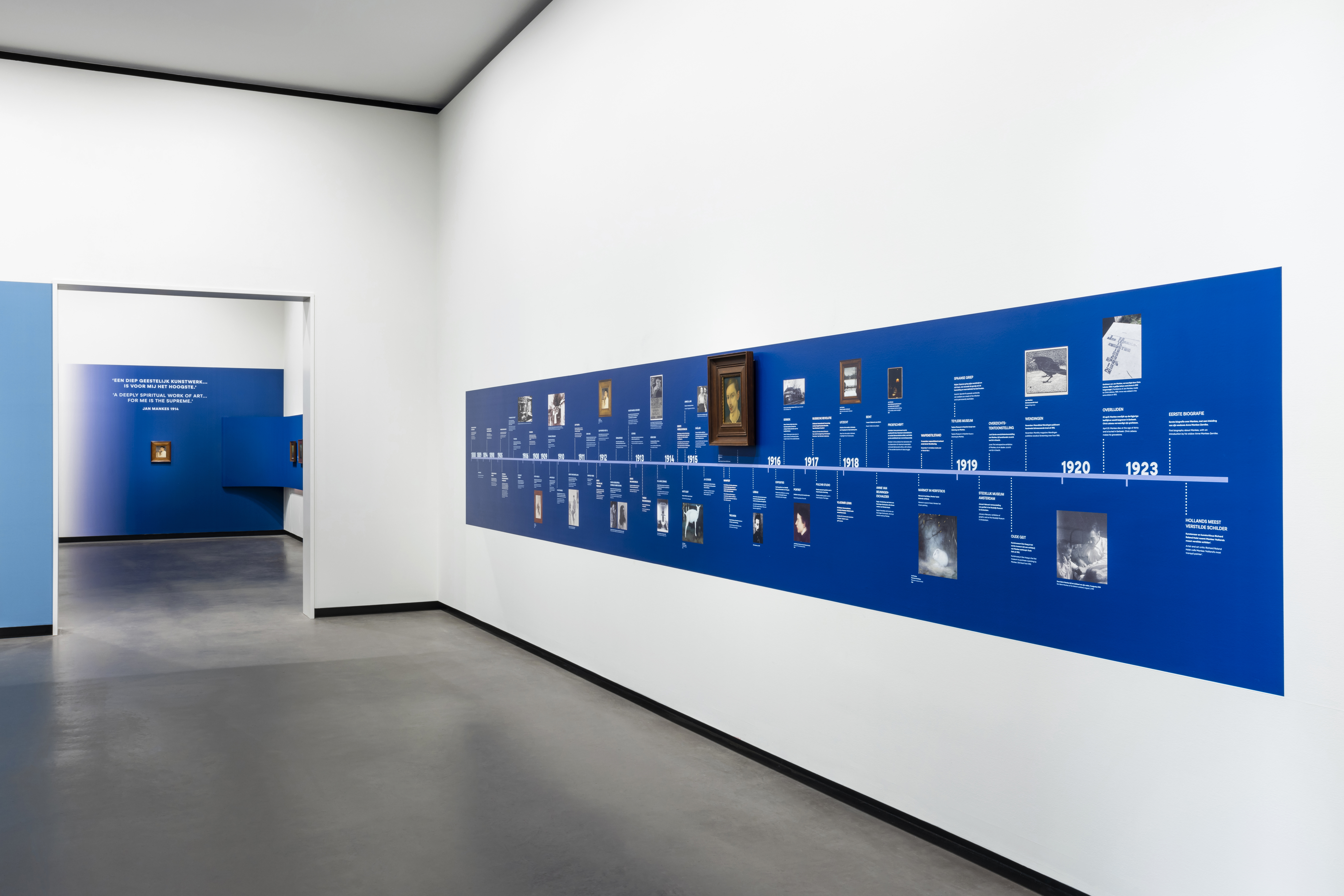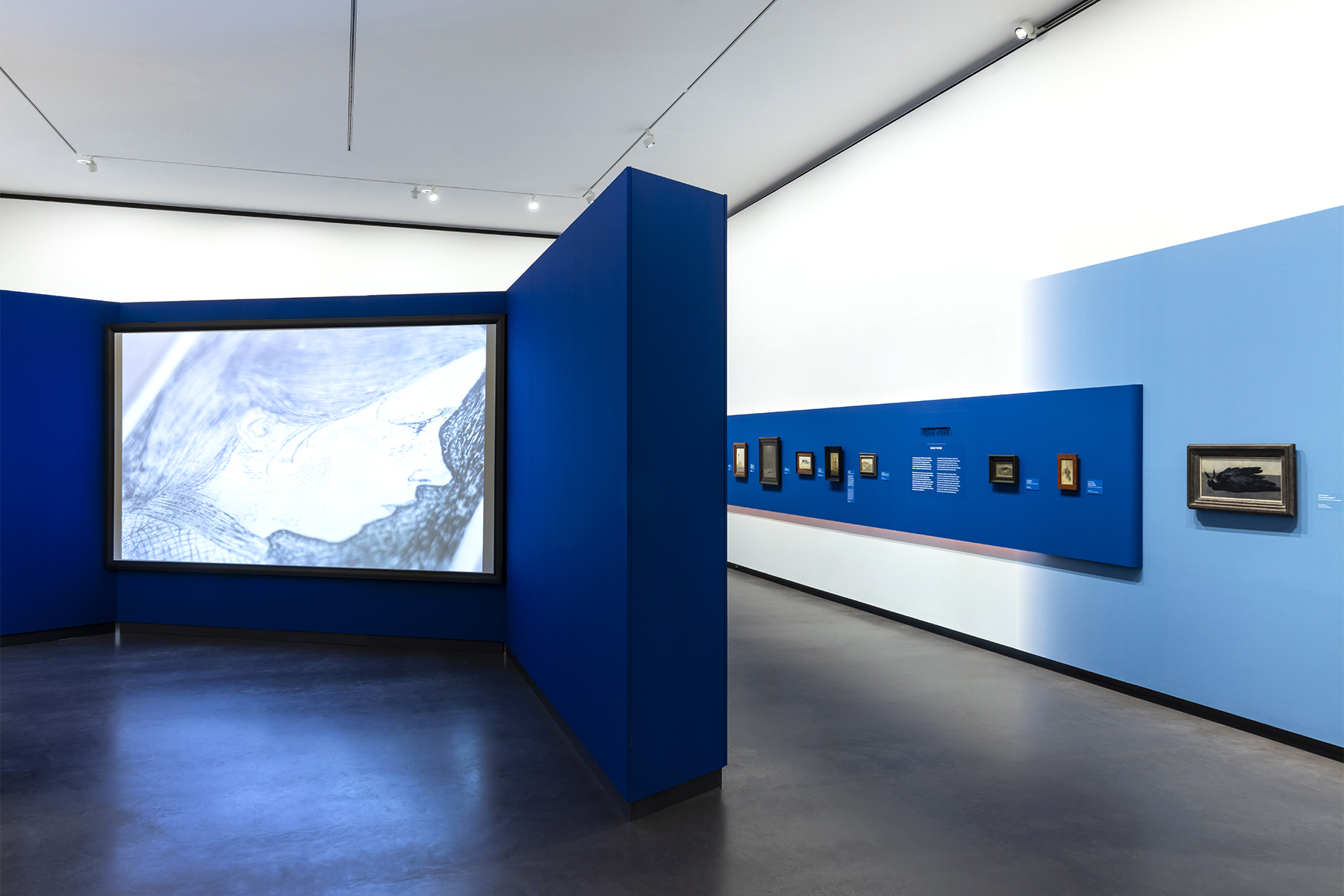 For the exhibition designers Studio met met, Jarle Veldman and Dana Dijkgraaf collaborated on a design built around two key visual elements: tones of blue and the use of shadows. In close cooperation with restorer Han Boersma, blue was selected as the primary color because it enhanced the visual strength and subtle tones of the artworks.